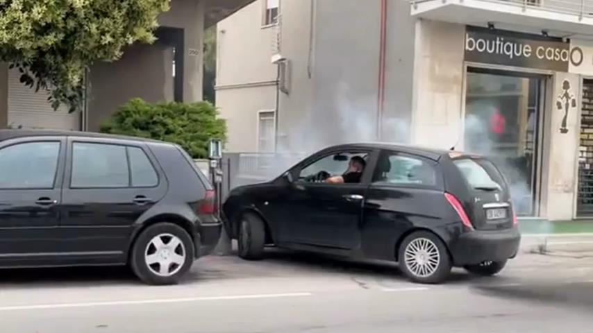 意大利的一名司機試圖把他的車停在停車場, 卻堅持在入口的拐角處相撞. 固執地, 他會一次又一次地嘗試而不改正他的路線, 直到離合器過熱.