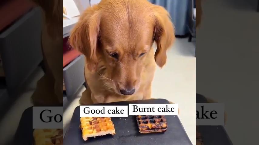 一隻狗可以在兩片華夫餅之間做出選擇. 但其中一個在烘烤過程中有點燒焦了...
