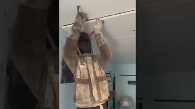 一隻巨大的蜜蜂躲在房子的天花板上方.