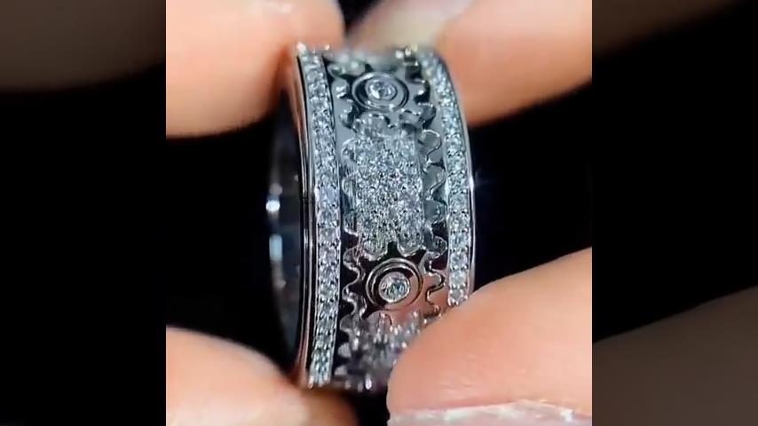 珠寶商製作原創鑽戒, 其兩個外側帶齒輪旋轉.