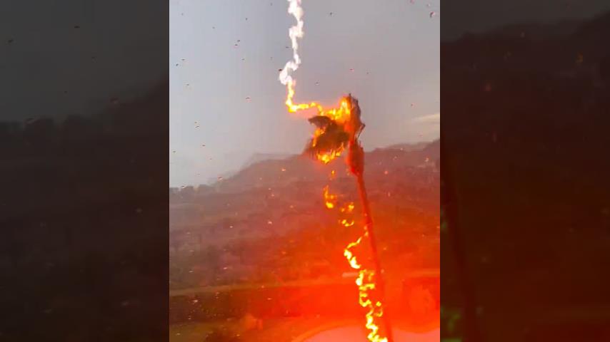 閃電擊中高大棕櫚樹的那一刻,蔚為壯觀.