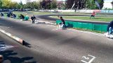 Michael Kovalyk 騎自行車者降臨在莫斯科,俄羅斯的 Vorobyovy 山, 而站在他的小輪車直立. 音樂:...