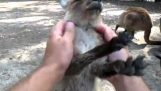 當它坐平放一條毛巾, 刺蝟喜歡上被一名男子腹部按摩. 小片刻的放鬆.