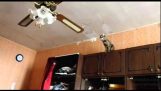 一隻公羊攻擊一個人, 但他只是在公羊靠近時跳起來就避免了它.