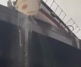 幸運的是, 在這次港口事故中沒有人員傷亡. 幾噸容器倒在卡車上. 然而, 司機...