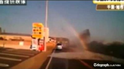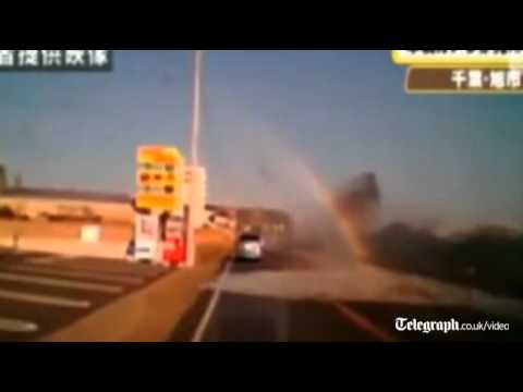 可怕鏡頭通過坐車的時候突然衝擊的海嘯