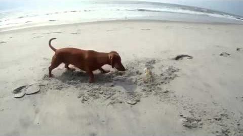 使用者從伊拉克昨天發佈一段視頻, 在其中一隻狗埋葬死去的小狗. 狗看起來...
