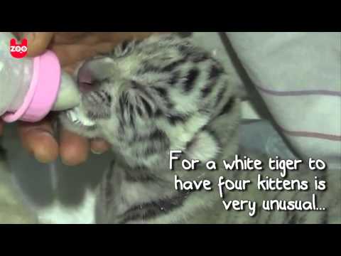 一隻白老虎在烏克蘭的雅爾塔動物園生下4隻小老虎. 目前估計世界上只有不到100隻白虎.