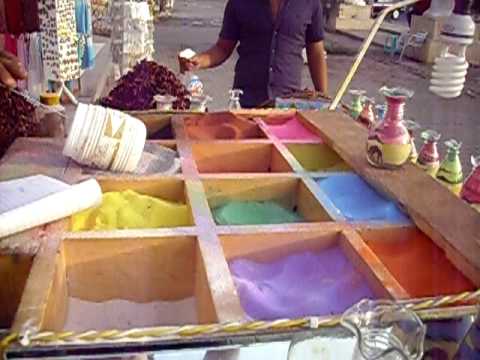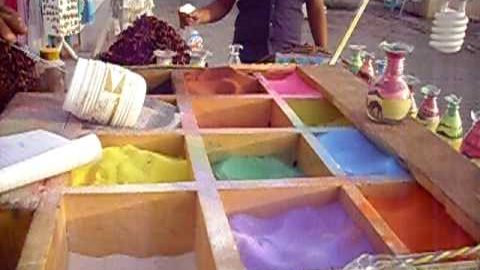 用一個玻璃樽彩砂畫, 從巡迴演出者在沙姆沙伊赫 (埃及).