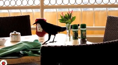 集合的從無助的人們偷吃食物的鳥