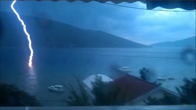 2016年7月24日,在芝加哥, 乘搭車記錄風暴, 當閃電撞到木製時。.