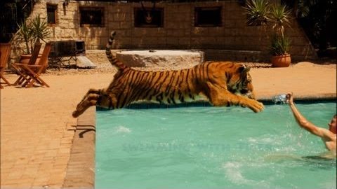 這只老虎和狗一起增長, 和已經成為形影不離的好朋友