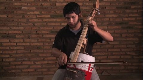 管弦樂隊在小村莊的巴拉圭卡特烏拉, 利用回收的垃圾製造的樂器.