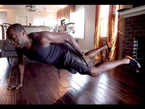 一位女士正在嘗試複製她在互聯網上看到的視頻, 有人通過支撐雙腿來彎曲的地方...
