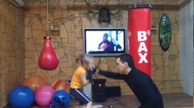 這個有天賦的小女孩從哈薩克斯坦學習拳擊的説明下她的父親.