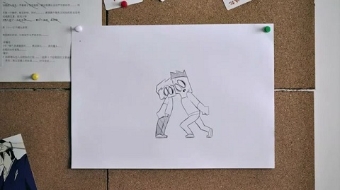 兩名男子為一個女人的心而戰, 在由中國中國傳媒大學尼瑪學校學生創建的動畫.