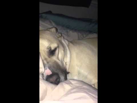 2022 年 4 月 21 日,在馬薩諸塞州馬布爾黑德的一個車庫裡, 一隻狗在他的嘴裡握住蝙蝠,...