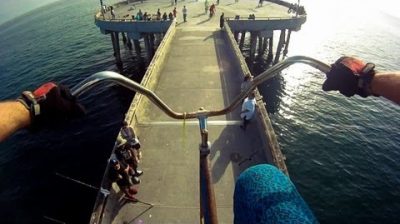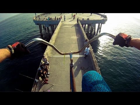這是 Richie Trimble 在即興自行車巨名稱'Stoopidtall', 高度為 4,42米. 這裡第一次在洛杉磯街頭的領導.