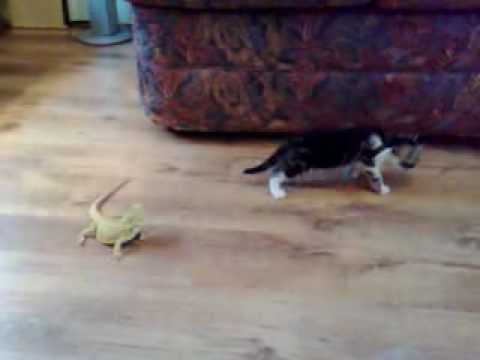一隻小貓反應非常滑稽如何當一隻蜥蜴嚇.