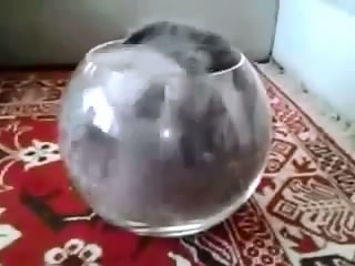 魚缸激發興趣的一隻貓, 誰正在設計她如何設法進入...