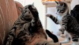 在俄羅斯的房子, 寵物津貝麗娜(Zimbelina)隱藏了她的玩具,並試圖與貓一起玩. 或者...
