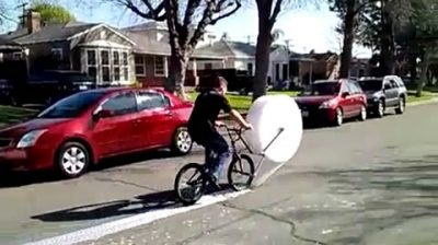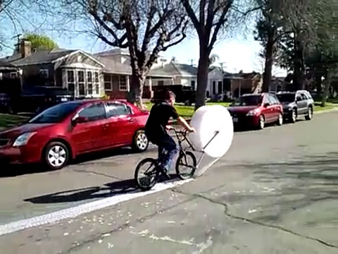 '泡沫包裝自行車'是有爭議的 Eric 巴斯獨特發明. 它是只是一輛自行車與自訂包裝泡沫與已知尼龍 (泡沫包裝) 我們都想去的地方 skame 用我們的雙手.