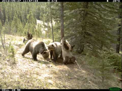 μια μεγάλη καφέ αρκούδα καταγράφηκε από έναν κάτοικο τη στιγμή που επιτίθεται σε ένα μεγάλο..