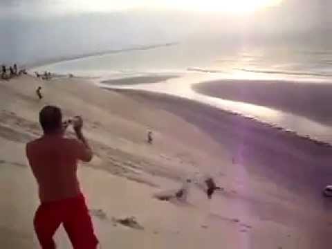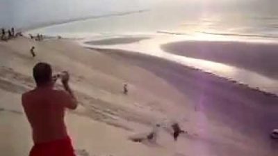 一個人寫到海灘與航拍, 當他的無人機出現電池問題時....