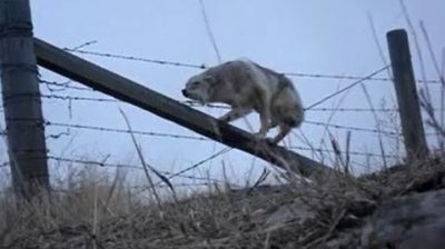 郊狼的救援被困在鐵絲網