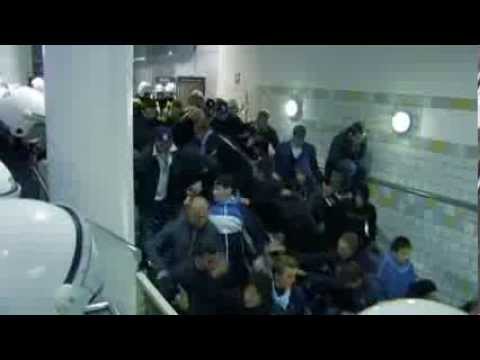 在足球之後匹配在瑞典, 憤怒的球迷試圖降落到車站自動扶梯. 而這不是, 他們得到了一張去地獄的免費門票…