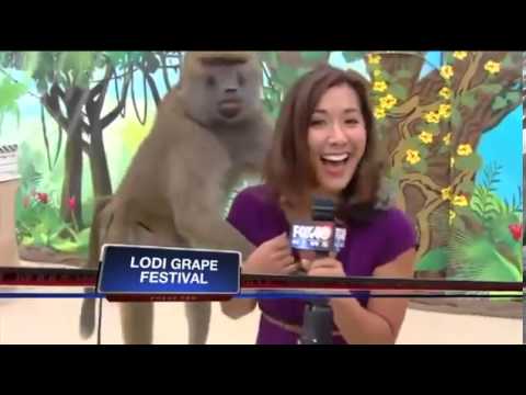 趕上極大的熱情從福煦新聞頻道的記者薩布麗娜 · 羅德里格斯胸部的一隻狒狒.