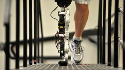4年前,32歲的Jacques Waterer在一次摩托車事故中失去了一條腿. 現在提供的第一次的假肢/機器人腿,由大腦控制. 仿生腳, 從大腦發送到的剩餘的腿部肌肉的電氣信號解碼, 它只是對病人的運動, 但它也有一個馬達在膝關節和踝關節,允許爬梯子和其他具有挑戰性的活動. 假肢由 RIC 在芝加哥康復研究所設計.