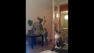一隻貓準備了一大跳, 一隻蝴蝶在燈具的目的.