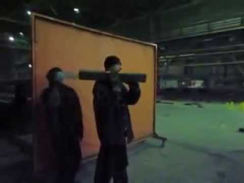 在金工實習工廠, 工人們建造一個非常滑稽的臨時火箭筒.