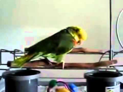 一個人從鸚鵡學到如何打鼓. 小鼓手似乎很有才華!