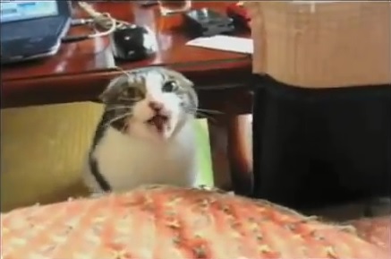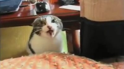 一隻小青蛙 (角鯊目) 似乎是生氣的擁有者. 他發出滑稽的尖叫聲來表達他的憤慨。.