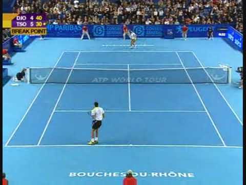 ATP 馬賽 2009: 喬 Wilfried 特松加 tsantizetai 當諾瓦克 · 德約科維奇在一家進行良好的接待服務. 看看接下來發生了什麼事…