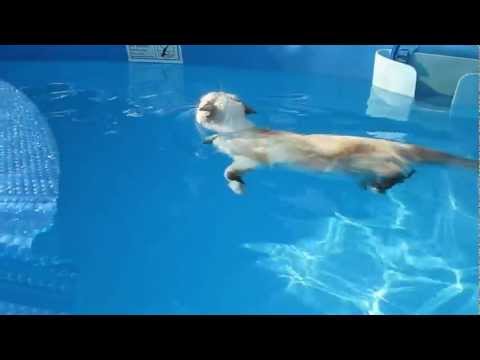 不尋常的東西,, 一隻貓喜歡在游泳池游泳的人.