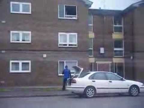 一個人從建築物窗戶拋出一大瓶可口可樂希望藉此打開並大幅飆升. 一開始...