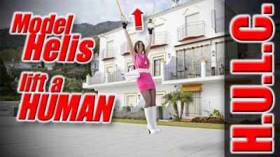 世界紀錄和航空的里程碑: 第一次過遠端控制人類飛行, 通過兩個模型直升飛機毫不費力地提升一個成熟的人.