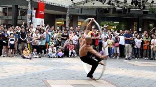 與金屬的花圈的驚人特技 (西爾輪) 從一個人在街上的臺北.