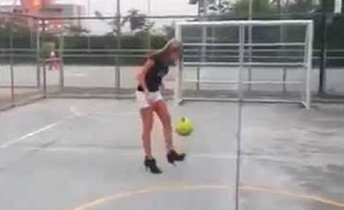 一個女人與足球技能, 使三元組與高跟鞋.