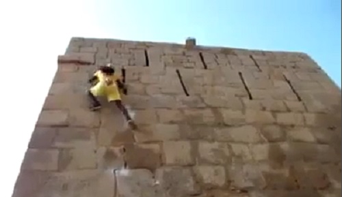 我們實際上發現刺客信條的字元! 令人難以置信的攀岩牆,一名男子在印度.