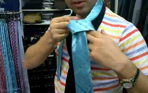 服裝店主在伊朗, 向客戶解釋如何很快打領帶.