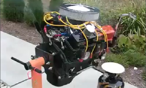 在澳大利亞的工程師建造形狀V8發動機,柴爐. 隨著馬達的幫助, 爐子帶來空氣...