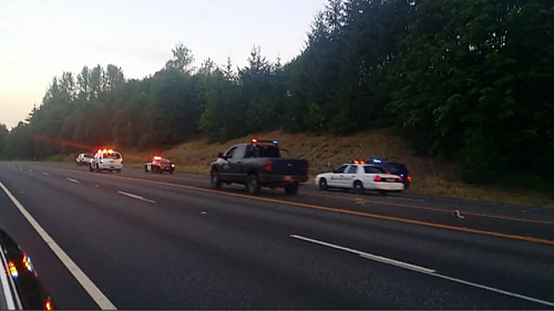 有趣的汽車追逐低轉速之間巡邏小組和 SUV 沒有輪胎.