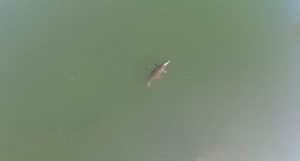 新的視頻顯示克里特島在河大壩裡游泳的鱷魚, 在索斯, 注意到尼科斯 • Sarantos 與一架無人駕駛飛機. 據估計, 這種爬行動物可能來自于一個人有它作為寵物和引發崩落時, 他過去訪問過一些馬戲團被拋棄或該區域.