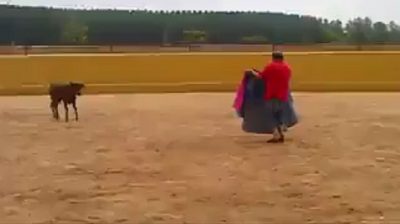 西班牙一名男子先後在鬥牛訓練, 它始于年輕的公牛是非常狡猾的人. 我會假裝,葉子在相反的方向, 但將攻擊後立即與不幸的人,最終受傷的論壇.