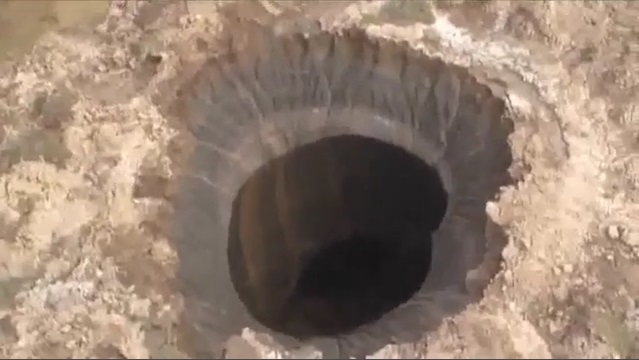 一個巨大的洞,是從一架直升機在西伯利亞亞瑪律半島拍攝. 這個巨大的天坑直徑約80米,現在深度仍然不明, 形成以及. 據科學家, 相反,它是為地下瓦斯爆炸並不是一顆隕石落, 正如一些以為.