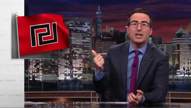 英國的主持人約翰 Oliver 幽默地評論金色黎明和匈牙利 Jobbik 党'在一段摘錄顯示'最後一周今晚'在 HBO.